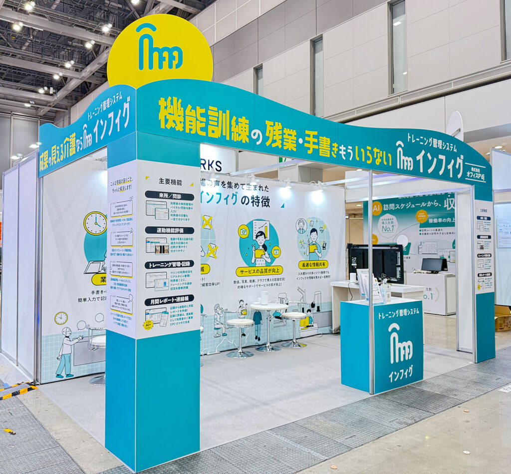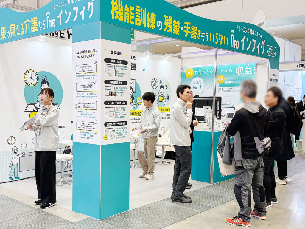 今回の展示会では、自社プロダクトであるトレーニング管理システム「インフィグ」の展示を行いました。また、連動企画として“成果の見える化”で進化する、自立支援介護の新スタンダード